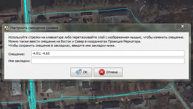 Нажмите правую кнопку на слое снимков («Bing Sat» в нашем случае) и выберите «Новое смещение».