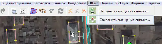 Создадим новый слой (сохранённый ранее слой с данными нельзя загрузить в виде калибровочной геометрии) и нарисуем кривую по центральным линиям пересекающихся объектов. Затем выделим её и активируем тот же пункт меню «Сохранить смещение снимка». Там нас спросят, что сохранять: калибровочный объект или смещение: