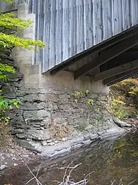 Береговой устой (опора в начале или конце моста). Обычно примыкает к твёрдому основанию, поддерживающую дорогу через мост. | ![]() |