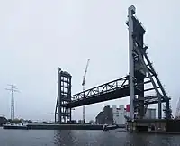 Опора у моста-лифта, на которой стоит одна из башен подъёмного пролёта |