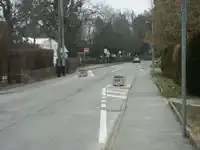 | Это успокоитель движения, используемый для замедления мопедов и быстрых велосипедистов на велосипедных дорожках. Так же служит для отвода воды. Часто из сборных железобетонных элементов. | ![]() | |||