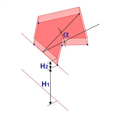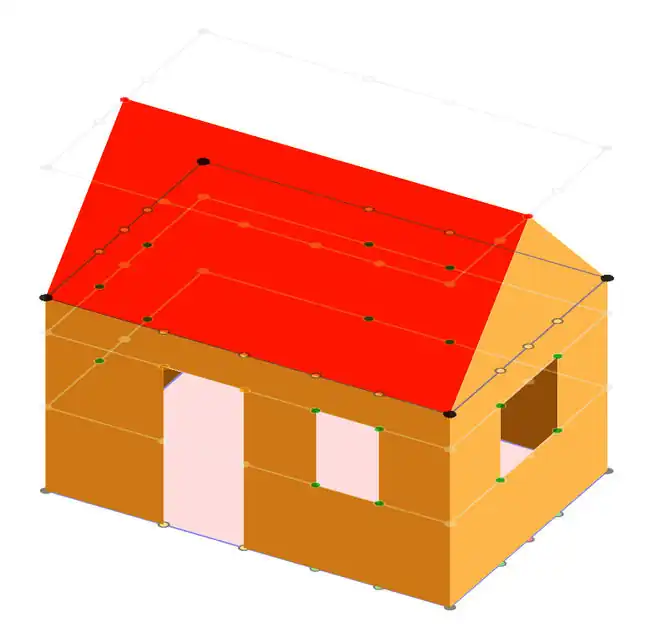 - Neigung des Daches, Alpha; wird definiert durch die Höhen 3 bekannten Punkte.