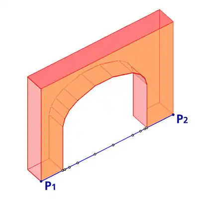 Przy pomocy tego narzedzia mozna tworzyc skomplikowane otwory w scianach, wenn man mehrere Punkte entlang der Polylinie mit verschiedenen Öffnungshöhen Ho taggt. Wird keine Unterkantenhöhe Hb an diesen Punkten getaggt, so wird Hb jeweils als null angenommen und die Öffnung von dem Boden aus gezeichnet.
