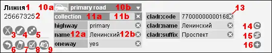 - Щелкайте по иконке с машинкой, пока вместо машинки не покажется то, что вы редактируете: дорога (road), тропа(footpath), велодорожка(cycleway), ж.д. путь (railway) или река(waterway).