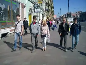 На прошлой встрече пирог был классическим: несколько кварталов, которые нужно обойти и зарисовать как можно полнее. В случае Невского куски были бы слишком маленькими, хотя многие приезжие в сторону от проспекта и не суются. Поэтому решил провести эксперимент и убрал одно из измерений. Теперь каждому даётся одна сторона улицы примерно в километр длиной. Нужно пройти её целиком, скрупулёзно сфотографировав и отметив на обходном листе абсолютно все POI (поскольку навигаторы в городе бесполезны, их заменяют листы, где можно ставить точки относительно контуров домов). Это займёт где-то час, если не увлекаться. В остальные час-полтора нужно снова пройти по отрезку, но на этот раз заглядывая во все дворы и проходя по примыкающим улицам. Конечно, на практике эти проходы совместились в один.