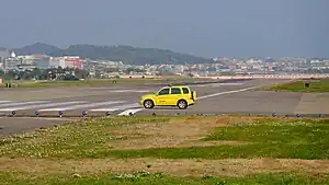 На общей точке пересечения дороги и взлётно-посадочной полосы