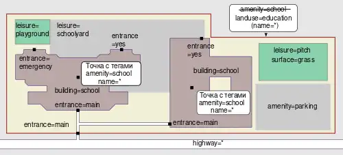 Несколько школьных кампусов, управляемых одной и той же организацией, должны быть отдельными полигонами amenity=school. Не используйте отношения для выражения отношений между кампусами, вместо этого обозначьте каждый кампус соответствующими тегами operator=*, brand=* или owner=*.