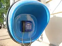 Телефонная будка или телефон на подставке или на стене. Обычно вы платите за их использование, часто только с помощью карты предоплаты.