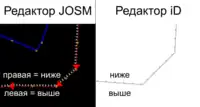 Также рассмотрите тег cutting=* для одной стороны выемки в ландшафте, если она проходит вдоль шоссе и не является искусственной стеной. Они более ровные (но немного менее вертикальные), если вы уточняете существующую линию, у которой уже есть другие характеристики, зависящие от его направления (например, уже есть oneway=yes или cycleway:left=lane), которую нужно было бы изменить, чтобы включить в соглашение barrier=retaining_wall «правая сторона ниже, левая — выше».