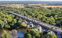 Большой мост с двумя эстакадами и эстакадой-велодорожкой проходящей под ними. Для наглядности показана только часть моста и контур выделен красной пунктирной линией.