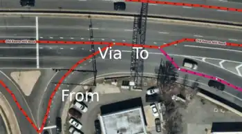 A from-via-to relation of type connectivity was used here to describe how the 3 lanes in role from transition into the 4 lanes of role to.