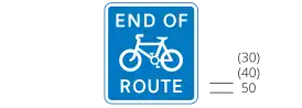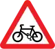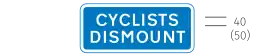 Pedal cyclists and drivers of electric scooters being used in a trial to rejoin main carriageway or dismount at the end of, or at a break in, a cycle track or route | Permitted variants in TSRGD 2016 are "CYCLISTS DISMOUNT" and "CYCLISTS REJOIN CARRIAGEWAY". | |