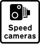 Speed Camera in Operation | See Relation:enforcement#Examples for marking any actual cameras. Repeater/reminder signs may not include the "speed camera" text. Signs for average speed check areas (where the vehicle's average speed between to cameras is calculated) will include the text "Average speed check" instead. | |