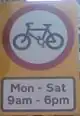 No cycling during the hours shown | bicycle:conditional=no @ (Mo-Sa 09:00-18:00)