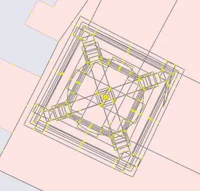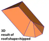 An existing building=yes with roof:shape=hipped shape: