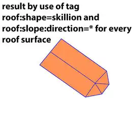 This very common but for the most users complicated roof needs in addition to roof:shape=skillion still the rotation definition - means the from top to down direction of fall of water on the roof.