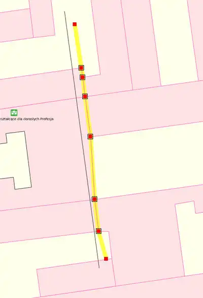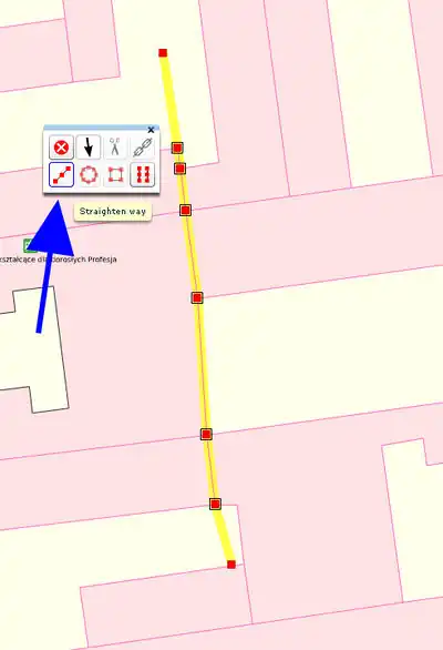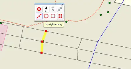 At points where the lines intersect with each other, nodes are added. With the tool "straight way" one line must be straightened after the other ... (a weakness of the potlatch is a slight displacement of the points which we have added to the nodes on the paths)