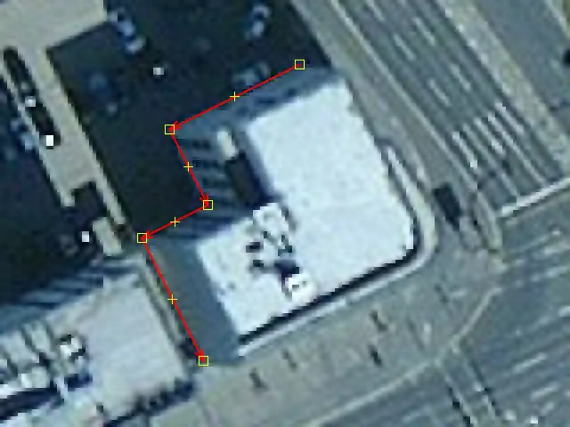 Drawing of building outlines based on low resolution aerial images