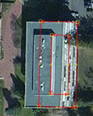Sloped roofs can be tricky even for an experienced mapper, because the angle of the roof can easily go unnoticed. If that happens, the building shape is drawn as follows: