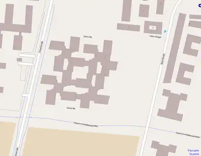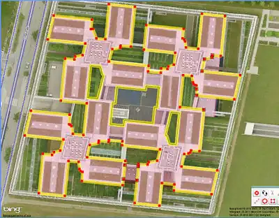- Traced, the L-shaped building in the middle.