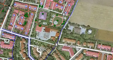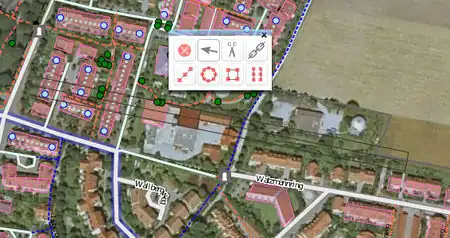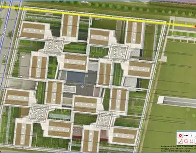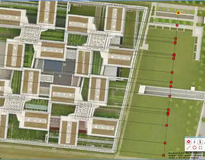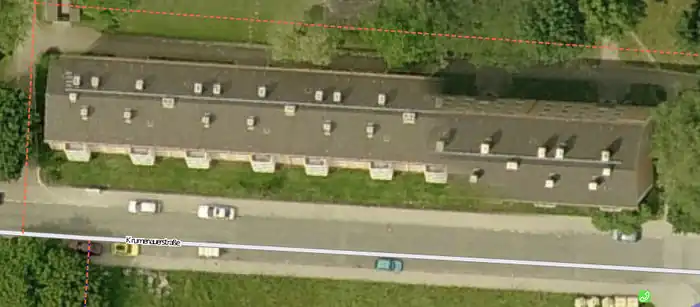 In case of free-standing buildings without reference to the street, the position error is reduced by a shift of half the distance between the lowest and highest position one as the outline for on the aerial photograph visible corner building on the site selected.