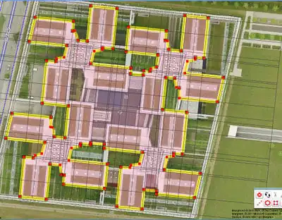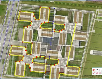 - The original polygon and line construction is deleted, and the new plan polygon shifted to the right place.