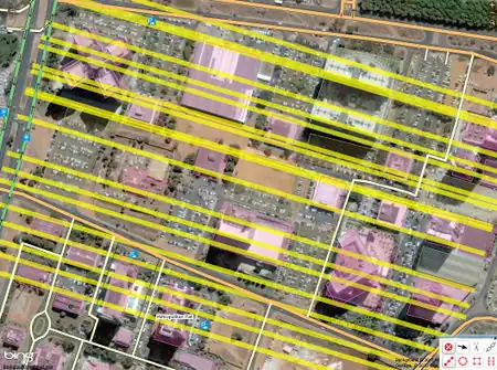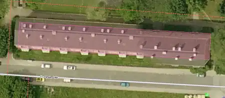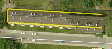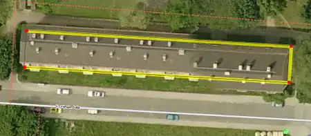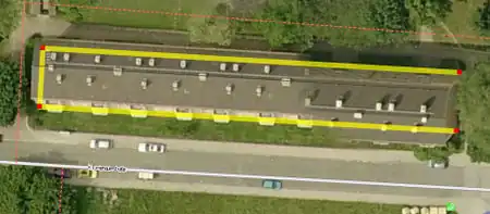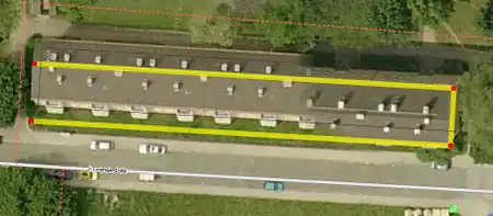 - A construction line parallel to the (right image in this example) the outer edge of the building is drawn and placed on the outside edge of building on the aerial photograph: