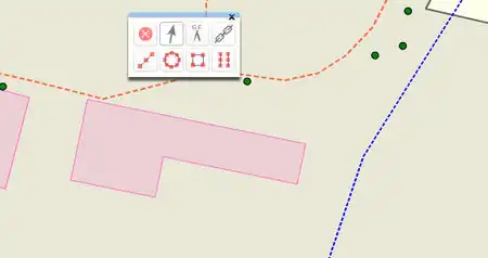 Situation: Some adjacent buildings (as an example here downtown, old buildings). We see the outer walls of the buildings are in fact a straight line, but in the drawing shape it is "almost" straight. To straighten these edges, we draw an auxiliary line, touching all points of this curve. It is necessary that at least one endpoint is outside this line to straighten the walls: