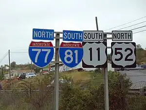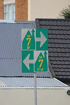 In several countries, a road route is typically considered to travel north–south or west–east.[1] Cardinal directions accompany route shields on all signage, including reassurance markers and guide signs. In everyday speech, people refer to the "westbound" or "eastbound" lanes of a road. This usage has also carried over to bicycle routes in many areas. The following countries are known to associate cardinal directions with routes: