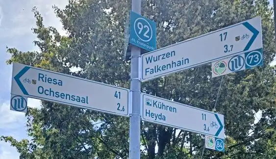 Die Ausschilderung des SachsenNetz-Rad wird landkreisweise durchgeführt und ist noch nicht abgeschlossen: