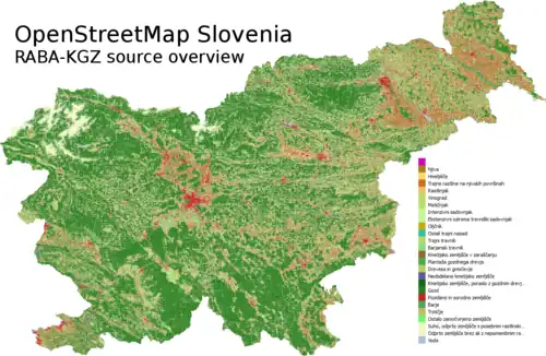• a note: Due to ongoing changes the imported land use data might not always represent the current (on the ground) or official land use (official in Slovene: "Evidenca dejanske rabe kmetijskih in gozdnih zemljišč se sprotno posodablja, glede na dostopnost virov in informacij. Prikazano stanje ne odraža vedno trenutnega stanja")