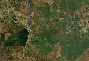 - These waterways flow through agricultural fields and are marked by vegetation along the banks.