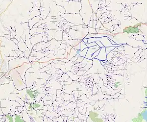 Small valleys combine to form the main waterway. Only the main waterway should be digitized.