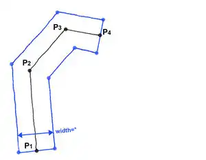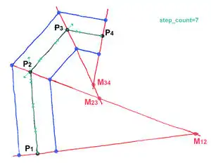 rendering machine calculates section points M12-M23-M34 by use of angle bisectors.