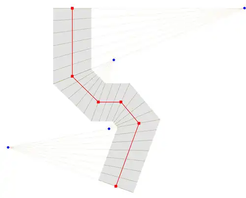 In diesem Fall werden die Endpunkte beider Linien miteinander verbunden. Die einzelnen Punkte der Linie die mehr Punkte besitzt, werden über das Kriterium der kürzesten Entfernung mit den Punkten der zweiten Linie verbunden.