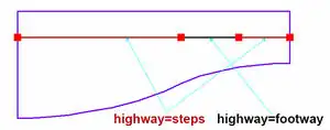 Steps (black midline) and footway (red midline)