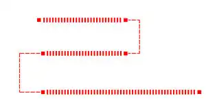 Mockup rendering of a sequence of highway=steps and highway=footway with the same width=*: