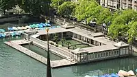 This is a area consisting of both water and land. A designated bathing area at any kind of water that is not artificial like a swimming pool or similar. A fee may be charged for entry. Example: