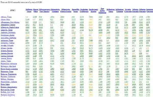 We take the biggest 250 cities in the US, and using CloudMade's routing engine generate pairs between them. This info is then munged into a giant 17Mb HTML table with links off to the routes and cities so that you can inspect them. It was originally re-generated each week.