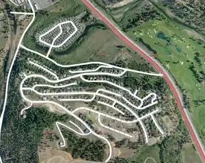The way to go about this is to look for distinctive features, and slowly move things around until they are in the right place. In this example a good place to start is the figure of eight at the top of the screen - it's fairly easy to see where the roads are meant to go, and which one is which. When they have been aligned, the next estate can be tackled. Finally, new roads that have been built in this estate after TIGER was created have been added, and the area is complete! Now a ground survey is needed to check that all the roads have the correct names, but that's probably easier to do now that the layout will be correct on a GPS.