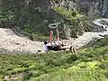 Forestry zip line used for downhill transport of logs: