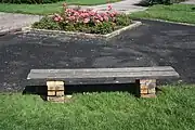 An accessible bench which a person in a wheelchair could transfer on to.