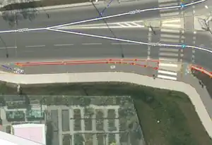 | Traffic calming paving on a street edge (This element should be treaten as kind of a traffic calming area, not footway) |