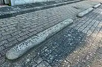 A special variant of delineator kerb setting a wheel stop position for parked cars.