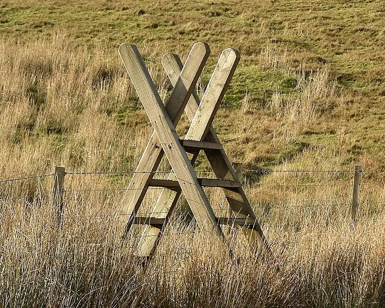 A stile is a structure which allows people to pass through or over a linear barrier=* (i.e., a fence or wall) via steps, ladders or narrow gaps.