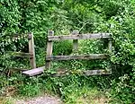 Squeeze stiles are narrow passages in a fence or wall. They are sometimes V- or Y-shaped and may additionally have a step.
