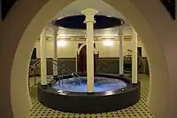 Indicates that the establishment offers hydrotherapy, skin refreshment and moisturizing. Commonly called "Day Spa" or its variants.