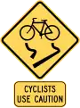 | indicates that riding bicycle is allowed but discouraged by posted traffic signs |