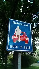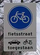 - ↑ Koninklijk besluit van 1 december 1975 houdende algemeen reglement op de politie van het wegverkeer en van het gebruik van de openbare weg, Titel II. Regels voor het gebruik van de openbare weg, Artikel 22novies. Verkeer in fietsstraten (2022-11-22) (retrieved 2022-11-27)