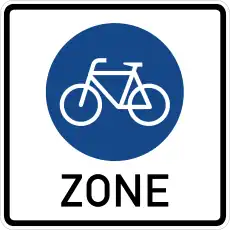 - ↑ CODE DE LA ROUTE, CIRCULATION SUR TOUTES LES VOIES PUBLIQUES, V SIGNAUX D’INDICATION, 17bis Rue cyclable (2022-10-23) (retrieved 2022-11-27)
